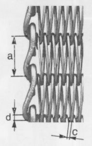 Lente tiek izgatavota no blīvi pītas plakanā profila spirāles stieples. Pamīšus pa kreisi un pa labi pītās spirāles savā starpā ir saistītas ar perpendikulāro šķērsstiepli. Šīs šķērsstieples gali beidzas vai nu ar cilpu, vai aizliekumu joslas iekšienē, vai ar metinātu šuvi. Nobeiguma veidu parasti izvēlas atkarībā no šķērsstieples diametra, tievākai stieplei – ar cilpu vai aizliekumu, biezākai – ar metinātu šuvi.