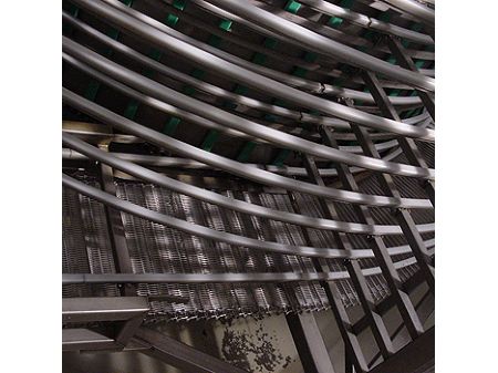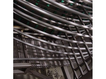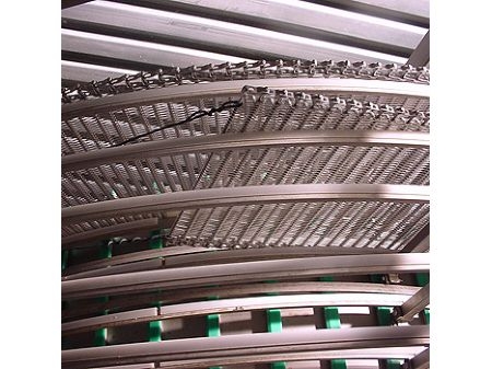 Kā mazgāšanas konveijers saldēšanas un dzesēšanas tuneļos, kā konveijers konditorejas un šokolādes rūpniecībā, kā dzesēšanas konveijers ķīmiskajā rūpniecībā, nesošais konveijers speciālās žāvētavās, izkraušanas konveijers pie speciāliem izkraušanas torņiem ostās un lidostās u.tml.