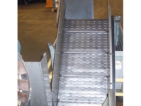 Konveijers izgatavots no dažāda garuma un platuma metāla plāksnēm, caur kuru malām izvērti šķērsstieņi. Šo šķērsstieņu gali vienmēr pabeigti ar rullīšu ķēdi. Konveijeri var būt komplektēti ar sāngabaliem vai pavadām. Konveijeru plāksnes var būt pilnas, perforētas vai atkniedētas, un vēlāk pie tām nepielīp transportējamie izstrādājumi. Šo konveijeru piegādes komplektā ietilpst savienojumu segmenti, bet pēc pasūtītāja vēlmes – arī ķēdes zvaigznītes.