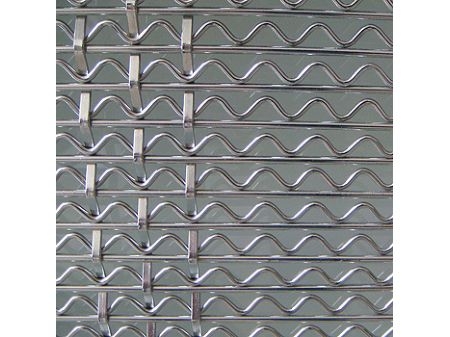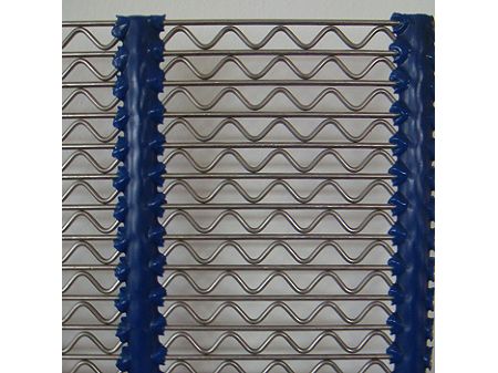 Продольная горизонтально волнистая проволока образует вместе с ровной проволокой треугольные ячейки. Благодаря колебаниям продольной проволоки возникает эффект самоочищения. Сито можно поставить для продольного и поперечного натяжения. Для больше стабильности и увеличения срока службы можно залить лежащие на опорах переплетения PU усилением.
